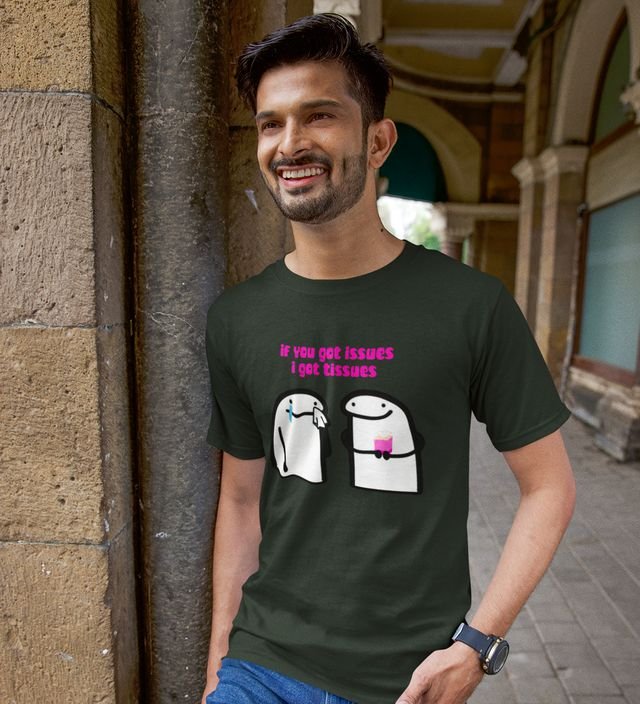 Tissues For Issues Green Round Neck Cotton Half Sleeved Men T Shirt with Printed Graphics