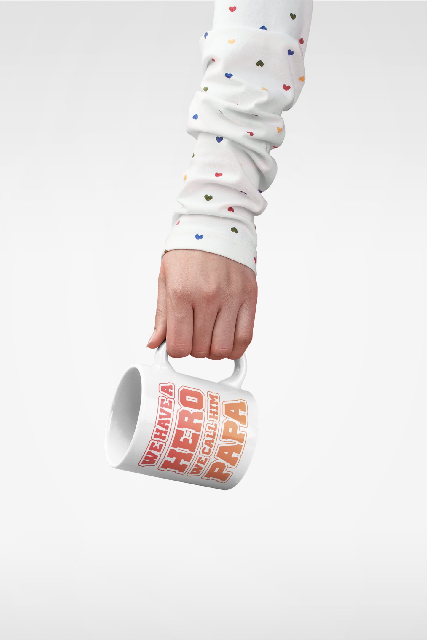 We have a hero we call him papa- family themed printed ceramic white coffee and tea mugs/ cups
