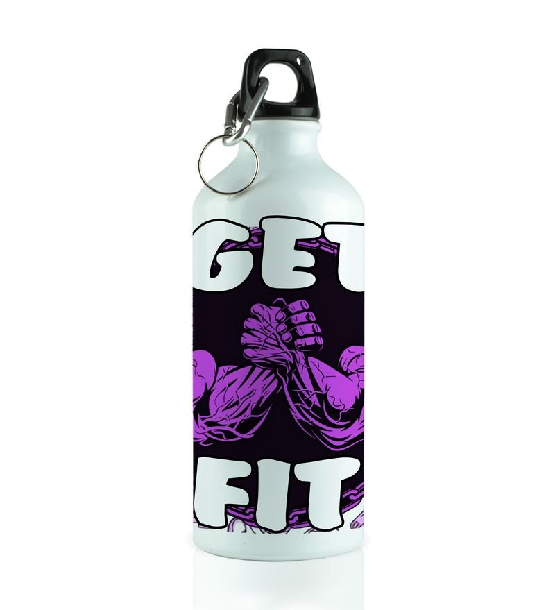 Get Fit Gym Motivation Artwork Printed Aluminium Sipper Bottle 600ml